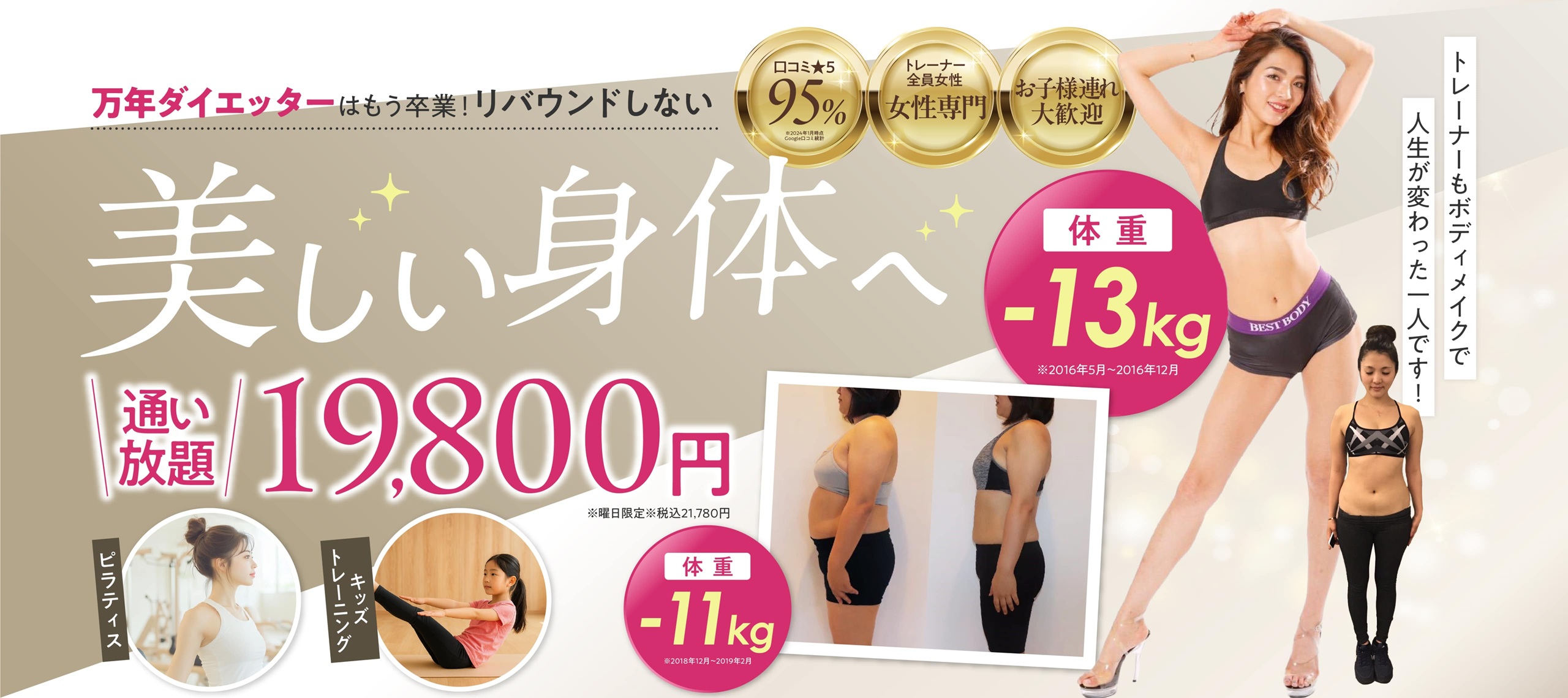 コースを卒業した後でも、リバウンドなく自立して食事コントロールできるところまで目指します。 - Q女性らしい綺麗なボディライン、美脚づくりやヒップアップを